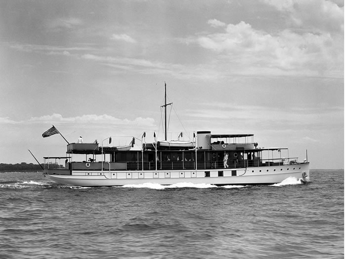 The Sequoia is a 104-foot classic wooden fantail motor yacht designed by John Trumpy and built in 1925 by the Mathis Yacht Building Co. in Camden, NJ. Having served eight sitting U.S. president (from Herbert Hoover to Gerald Ford), the Sequoia is perhaps the most significant piece of U.S. Presidential memorabilia in private hands.