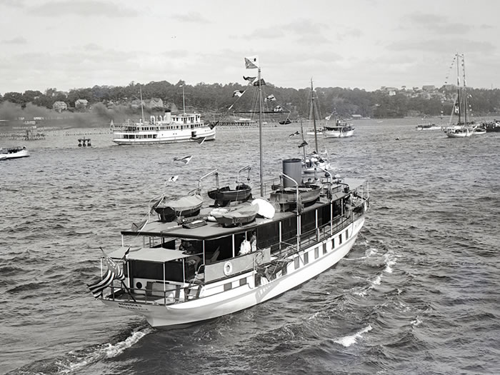 On September 4, 1931, Richard J. Sears took the iconic portrait of the 10 person Kennedy family in front of their Hyannisport home. On that same day, Sears photographed Joe and John Kennedy aboard Tenovus rescuing the family dog, Buddy, after he jumped overboard. This was also the same day that the then 6 year old Robert F. Kennedy was rescued by his older brothers after he jumped from Tenovus and almost drowned attempting to swim to shore, in order to impress his family. Recalling the episode while in the White House, President Kennedy said about his brother, then-Attorney General, “It showed either a lot of guts or no sense at all, depending on how you looked at it”.