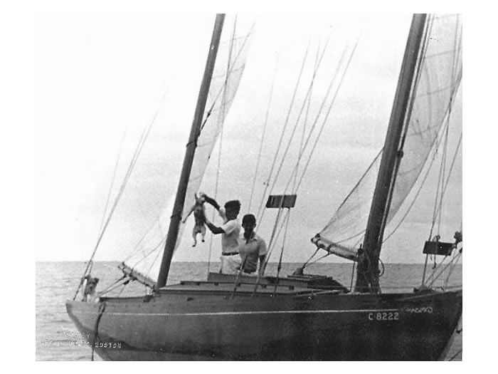 Racing for the Osterville Yacht Club, the two Kennedy boys were the youngest crew and the Tenovus the smallest boat in the very first running of the prestigious 230-mile offshore Vineyard Race in July 1932. Only 8 of the 23 entrants finished due to a horrendous storm which beached the Tenovus but miraculously only did minor damage. The Kennedy family sold Tenovus during May of 1934.